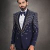 Be the first to review “Navy Blue Metallic Embroidery Tuxedo Set”